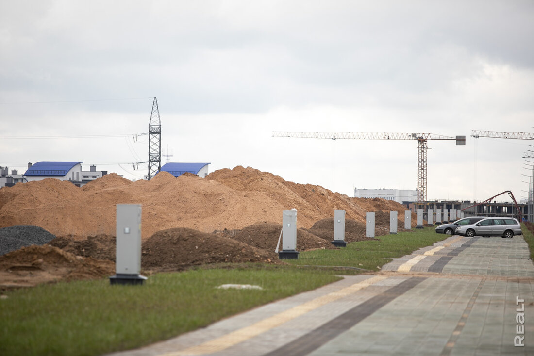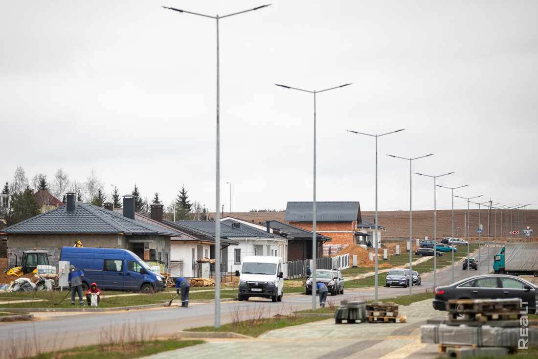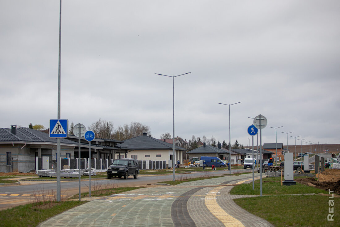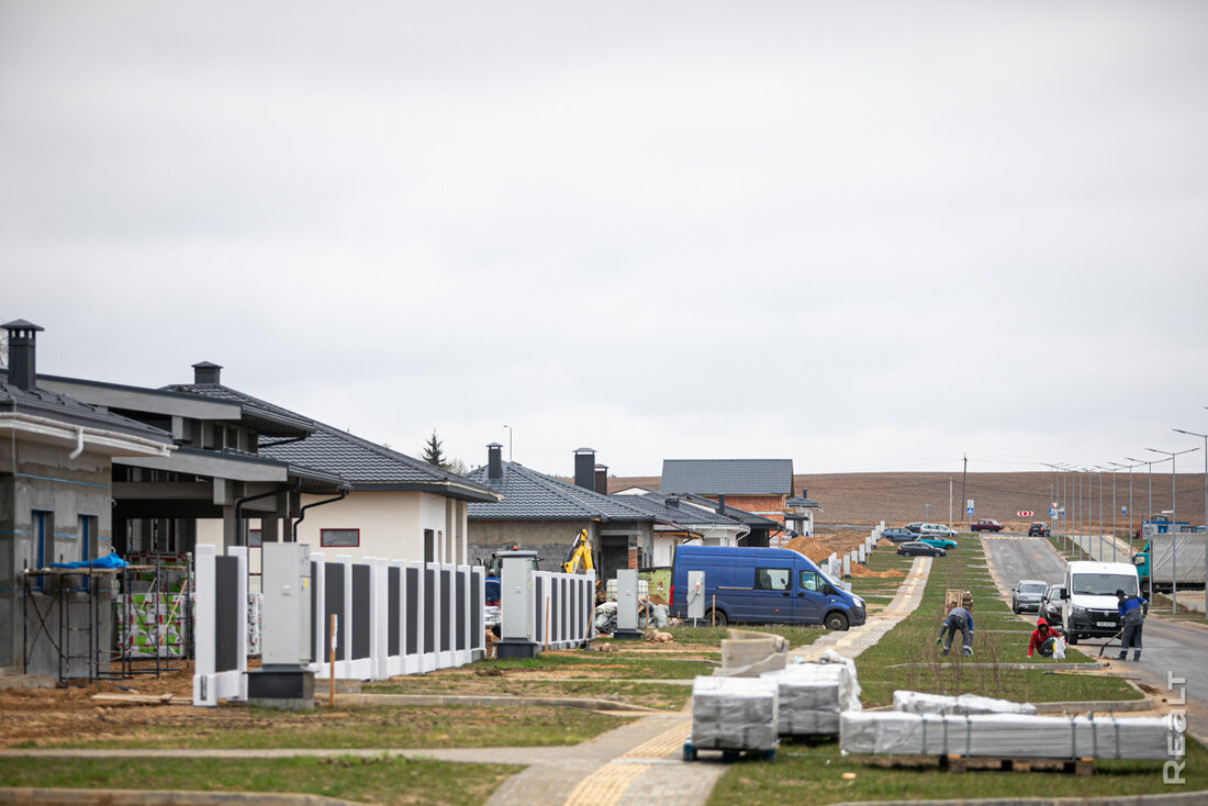 Источник материала: realt.by Примерно год назад мы оживление на полях за жилым комплексом «Левада». В этом тихом уголке развернулась стройка, которая поначалу прикидывалась кварталом панельных коттеджей. Но реальность оказалась несколько интереснее. На днях мы снова заглянули на стройплощадку и оценили, что там уже успели построить (спойлер – много). Рассказываем все подробности. Первые дома поселка (те, которые мы увидели в прошлом году) были панельными, что натолкнуло нас на мысль о типовом квартале. Однако сейчас на новоиспеченной улице коттеджей можно рассмотреть почти все типы индивидуального домостроения, популярные в Беларуси. Тут есть и блочные, и кирпичные, и даже деревянные. Мы не встретили разве что каркасники. Сейчас новый коттеджный микрорайон расположен буквально в чистом поле. Однако присмотритесь к строительным кранам на фото – это совсем рядом тянутся вверх дома жилого комплекса «Левада». Отсюда можно будет пешком дойти до набережной Свислочи, а также быстро доехать до улиц Орловской и проспекта Победителей. Вся инфраструктура в комплексе также готова. Проложены подъездные дороги, оборудованы контейнерные площадки, сделаны подъезды к домам, а также велодорожки и тротуары. Также можно заметить электрощитки, подведенные к каждому участку. Отметим, что строительство инженерно-транспортной инфраструктуры поселка велось по заказу УКСа Центрального района. Чтобы разместить новость на сайте или в блоге скопируйте код: