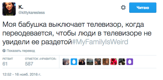 Фактрум предлагает читателю несколько твитов, в которых люди делятся странностями своих семей и родственников. Чтобы разместить новость на сайте или в блоге скопируйте код: