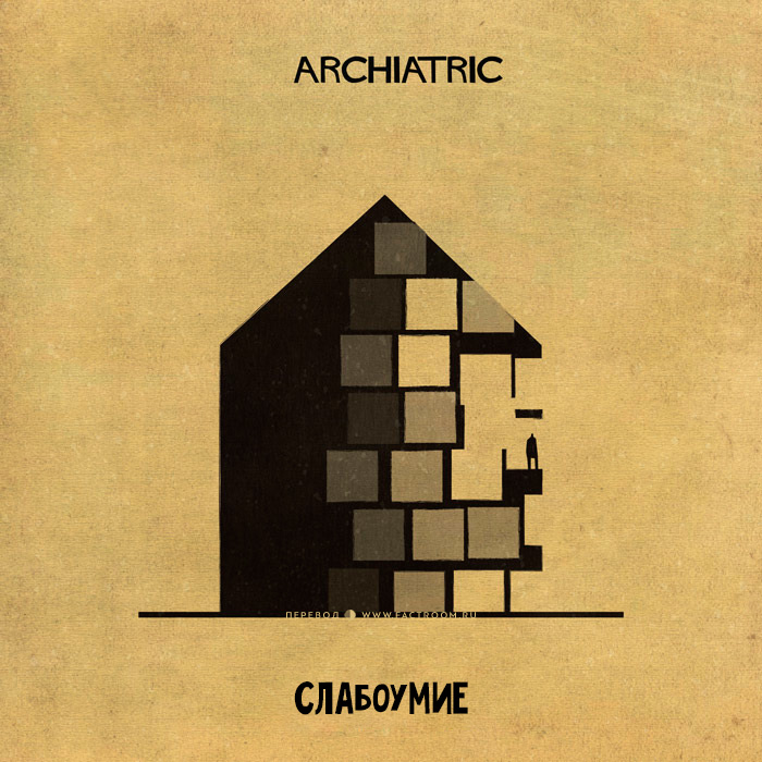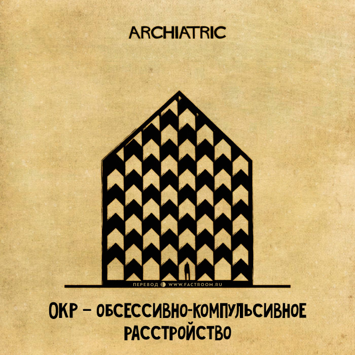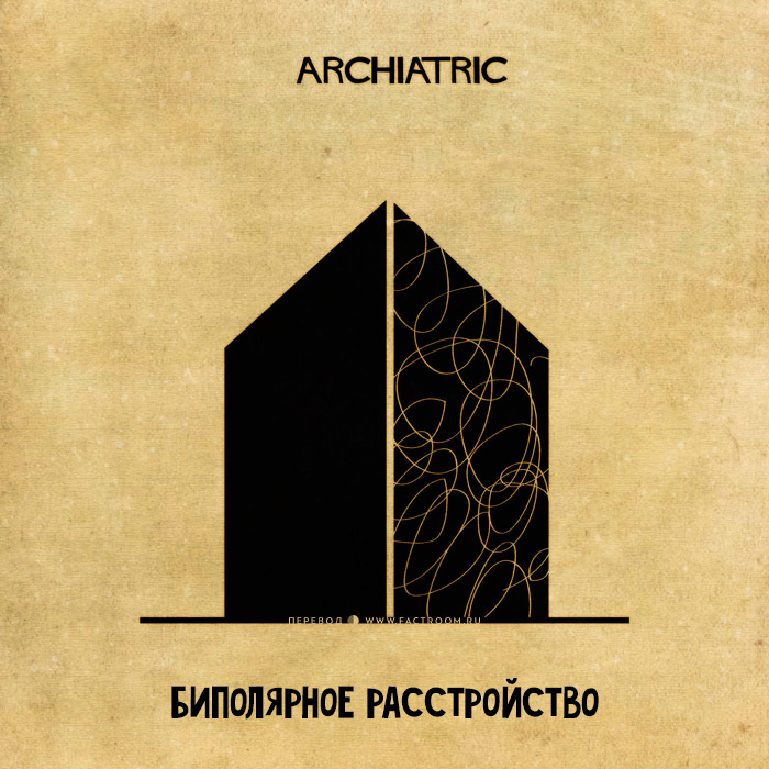 Фактрум хочет показать читателю работы художника Федерико Бабина, решившего показать расстройства психики в виде различных домиков. Его проект называется «Archiatric» и включает в себя 16 немного пугающих, но очень глубоких завораживающих работ. ТревожностьДепрессияБессонницаСлабоумиеОКР — обсессивно-компульсивное расстройствоБолезнь АльцгеймераБиполярное расстройствоАутизмФобииПаранойяДиссоциативное расстройствоРасстройство пищевого поведения (анорексия, булемия)ДислексияНарколепсияГендерное расстройство личностиЧтобы разместить новость на сайте или в блоге скопируйте код: