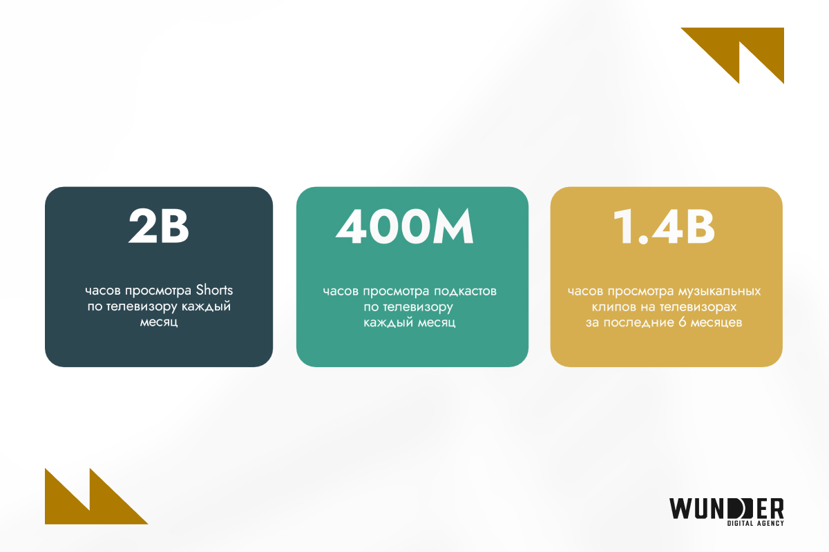 Partnership Manager по продуктам Google инновационного digital-хаба Wunder Digital Глобальная тенденция: YouTube — новое телевидение— Традиционное ТВ стремительно сдает позиции. Телевидение остается привычкой старших поколений, а вот аудитория 18−34 лет уже выбирает YouTube как источник контента «по умолчанию». На стороне платформы — универсальность. Пользователи заходят туда как за двухчасовым интервью, так и за короткими роликами, чтобы расслабиться. За последний год количество загрузок видео длительностью более 20 минут выросло на 16%, а Shorts — на 42%. Драйвер успеха контента в Youtube: длинный и короткий формат для охвата двух разных типов медиапотребления.