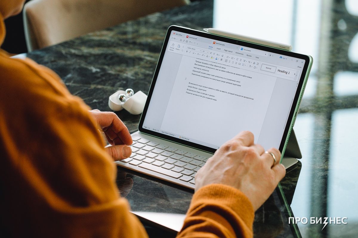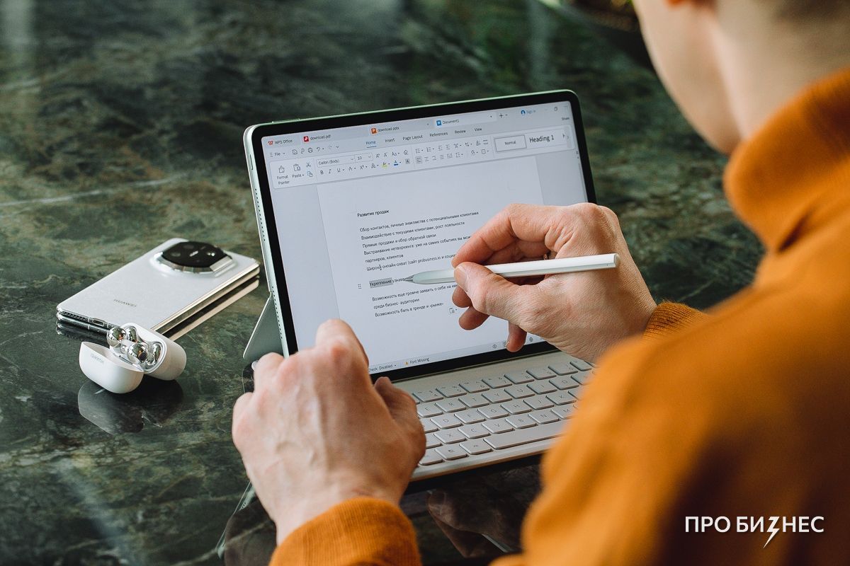 В какой-то момент неизбежно появляется срочная задача: уточнить условия, внести правки в документ или обновить презентацию. Я подключаю магнитную клавиатуру и работаю с текстом уже в привычной логике. Плюс в том, что компьютерная версия приложения WPS Office уже предустановлена: документы, таблицы и презентации можно открыть сразу, быстро отредактировать и отправить без лишних задержек.