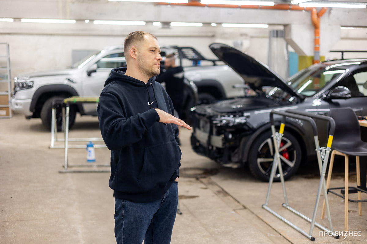 — Я начал свой бизнес, как и многие в этой индустрии, — со своего гаража. Во время учебы в университете мне никогда не сиделось на месте: я постоянно искал, где заработать и чем заняться. Работать руками мне всегда нравилось — мастерить, чинить, создавать что-то осязаемое. Однажды увидел в интернете карбоновые наклейки. Тогда это было новинкой, модным тюнингом для машин и гаджетов. Сначала заказал себе на телефон, попробовал наклеить. Получилось неидеально, но для себя сойдет. Дальше подумал: а почему не сделать это на машину? Наклеил — и понеслось. Другие посмотрели, загорелись: «Хочу так же!» С тех пор этим занимаюсь лет пятнадцать, но настоящим бизнесом это дело стало только пять лет назад. До того все крутилось в гараже: я думал, максимум — десять машин в помещении, и так до конца жизни. Дальше ничего не представлял.